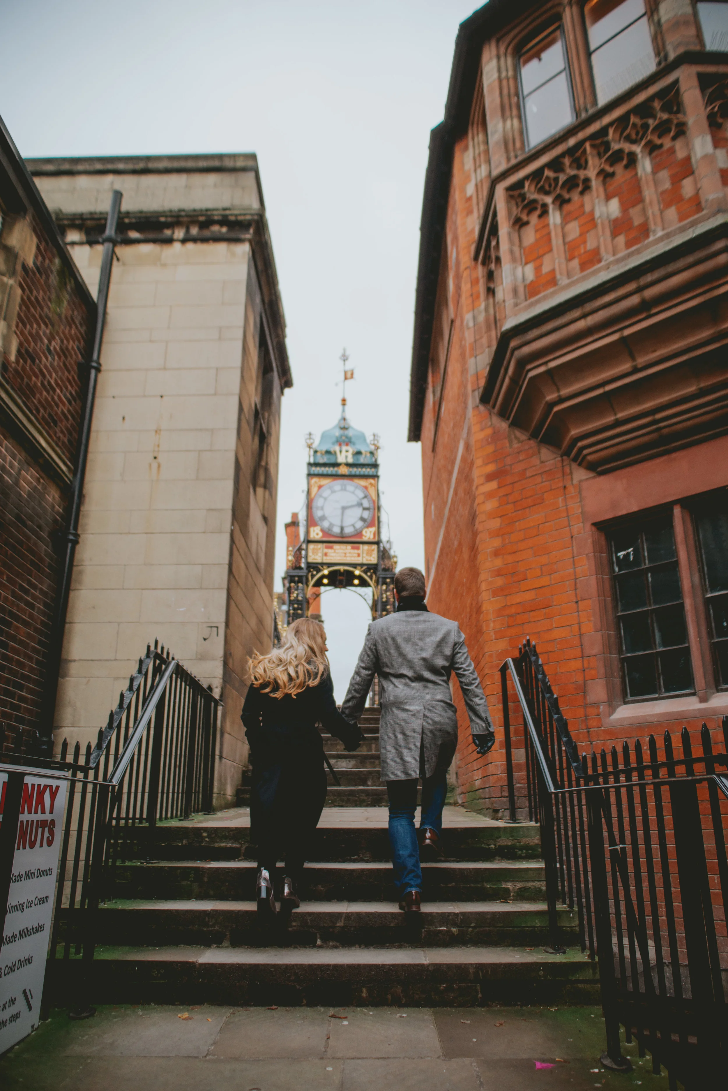 We met up in front of the famed Chester Grosvenor Hotel righ tin the heart of city and, after a quick drink, Elizabeth took us on a mini walking tour of her amazing home city. We explored the Roman Ampitheatre and walked up to the clock, we found little parks and cathedral ruins and walked along the river. In the 2 hours we hung out, there was an easy comfortability and I was so inspired by this beautiful couple's relaxed excitement about each other. Rob kept things light with some pretty terrible jokes and Elizabeth filled me in on their unbelievable wedding plans and by the end of the meeting, I felt like I'd known them for years. I am so so excited to photograph these two in just a few short months, here's a peek at what we got up to! Enjoy! x