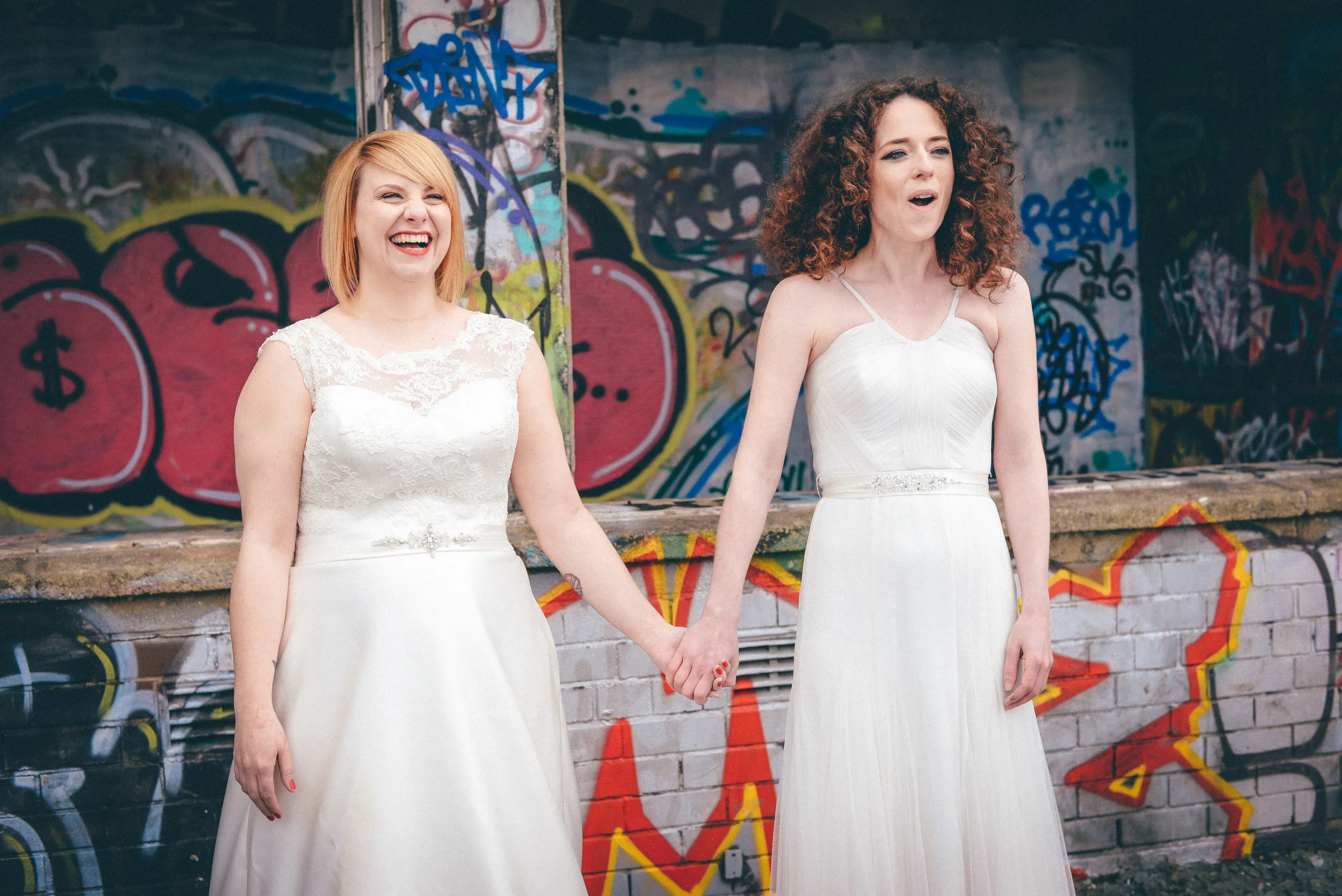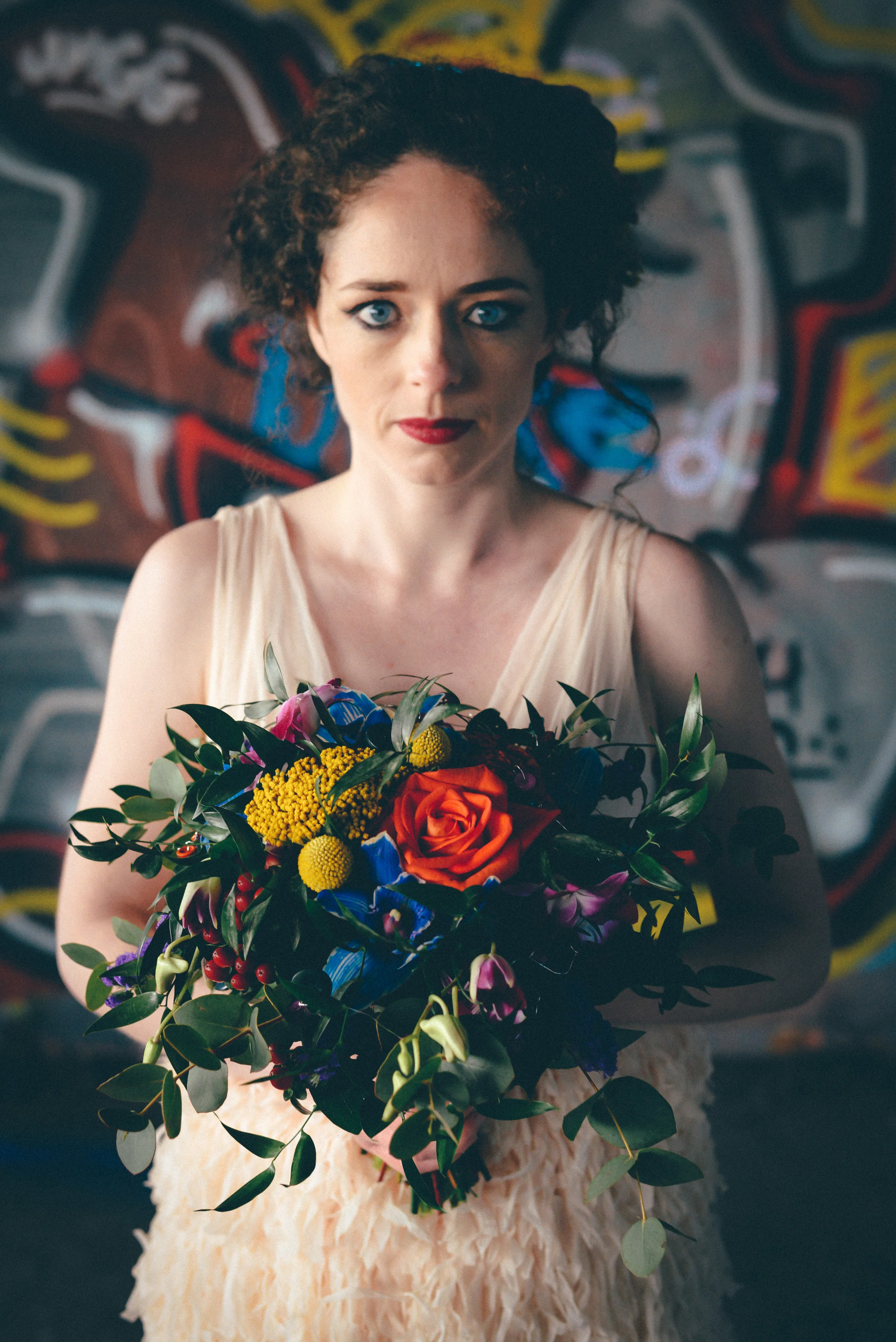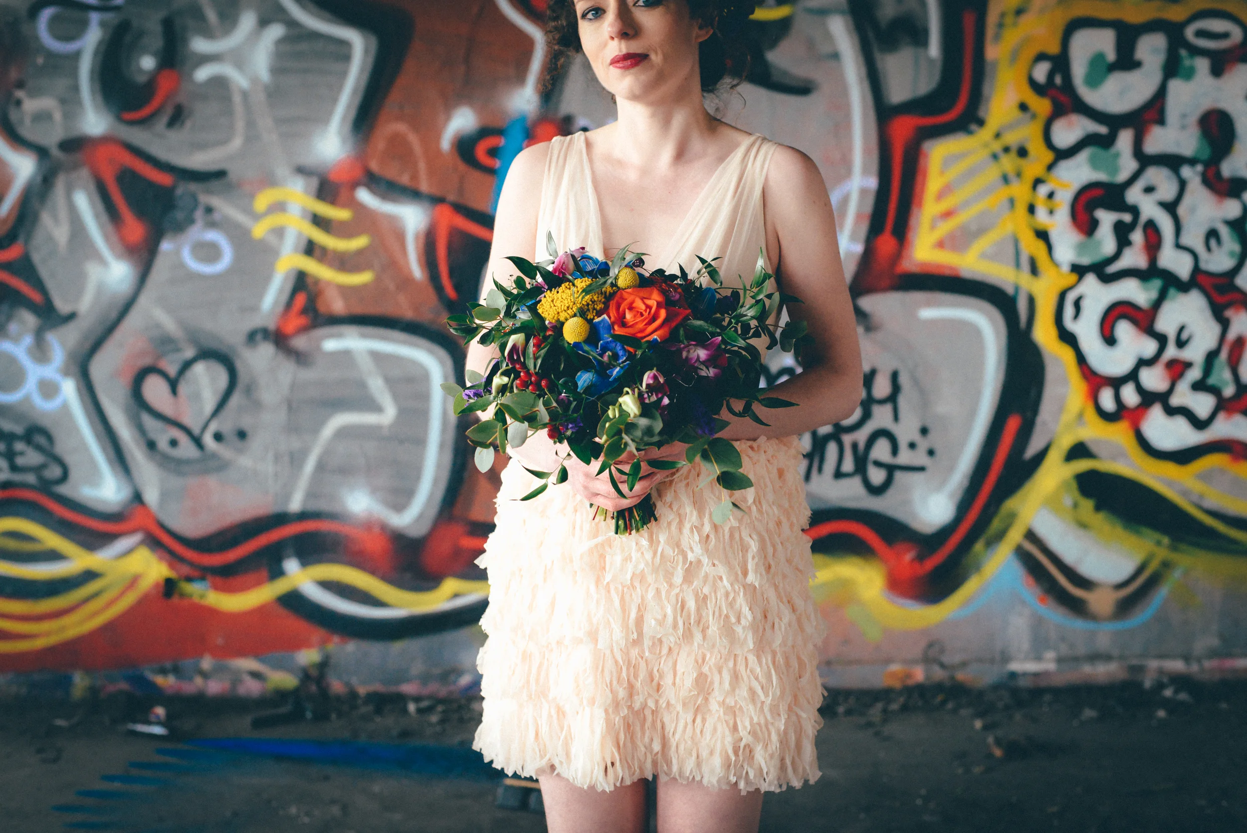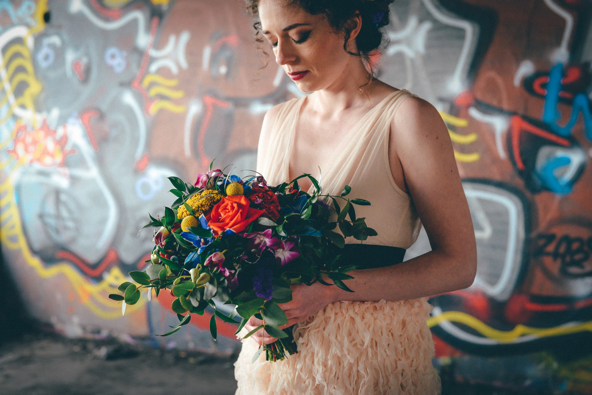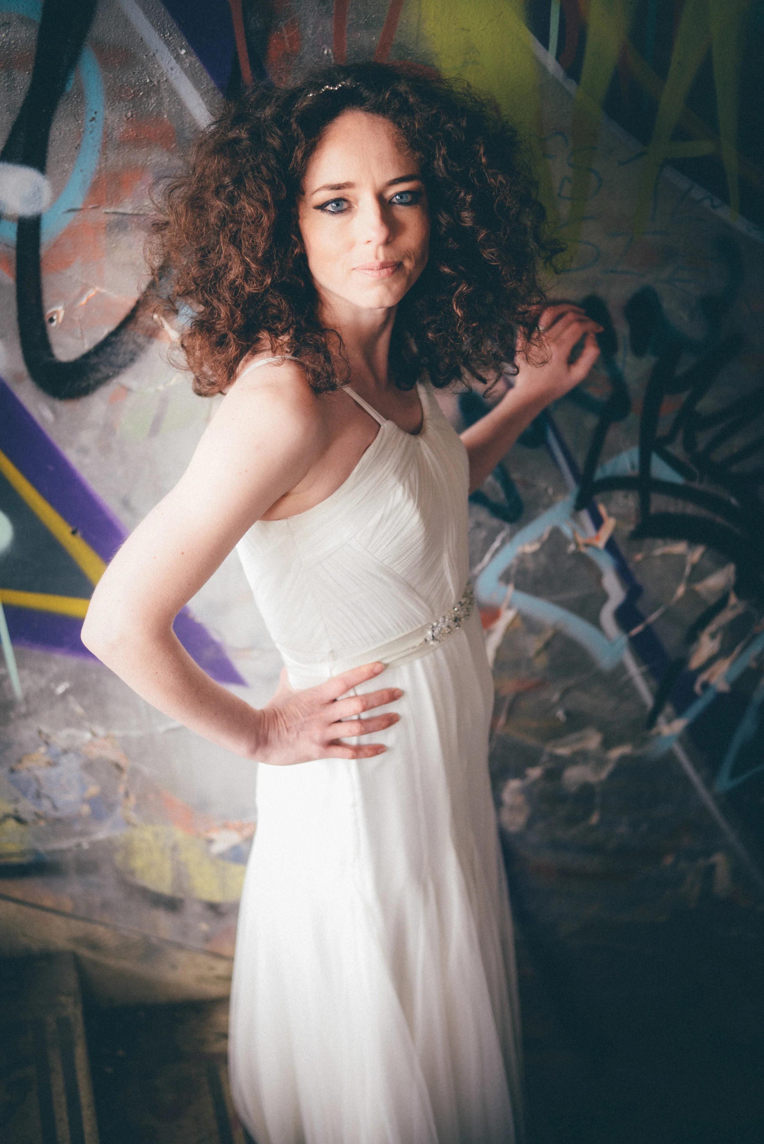 A few weeks ago I was working on the other side of the camera (as a bridal model, long story, so awkward) and as is always the case, began talking shop with the photographer. It was one of those very nerdy technical conversations that photographers do so well but the subject came up about styled shoots and how it was tough to get one together that ticked all the boxes but still inspired us. We were both after the same thing: gorgeous models who still looked like real people, fab dresses, some smoke for drama and a killer location. Immediately, his eyes lit up and he started telling me about this multi-story abandoned power station near Burnley that was covered in graffiti and quite easy to get to (always fairly accessible so we wouldn't feel like we were breaking too many laws!). Conversation turned to other subjects but in the following weeks, we continued to slowly eke out a plan: borrowing wedding dresses from family and friends (we couldn't risk a collab with a bridal shop as the location was seriously rough around the edges); signing up a MUA, his wife and my bff as models, getting a local florist on board, even a videographer to document the proceedings! We were short a groom but on the day managed to pinch the very stylish teenage runner to snuggle up to the lovely Liz. The whole shoot was a labour of love and between the setting, the enthusiasm & commitment of the whole team involved and some killer details, I am so so very proud of the result. I hope you enjoy! Special thanks to: Nik Bryant Photography, Satin Pictures Wedding Photography, Kat Horrocks MUA, Bliss Flower Art, Models Liz Parker and Laura Bryant, Jamie Sharp for the heavy lifting (and the spur of the moment modeling!) and the Langley kids for their enthusiasm and general morale boosting! xx