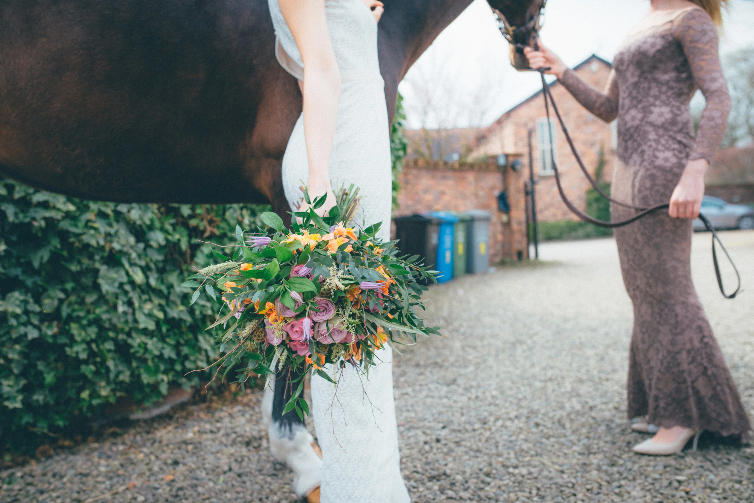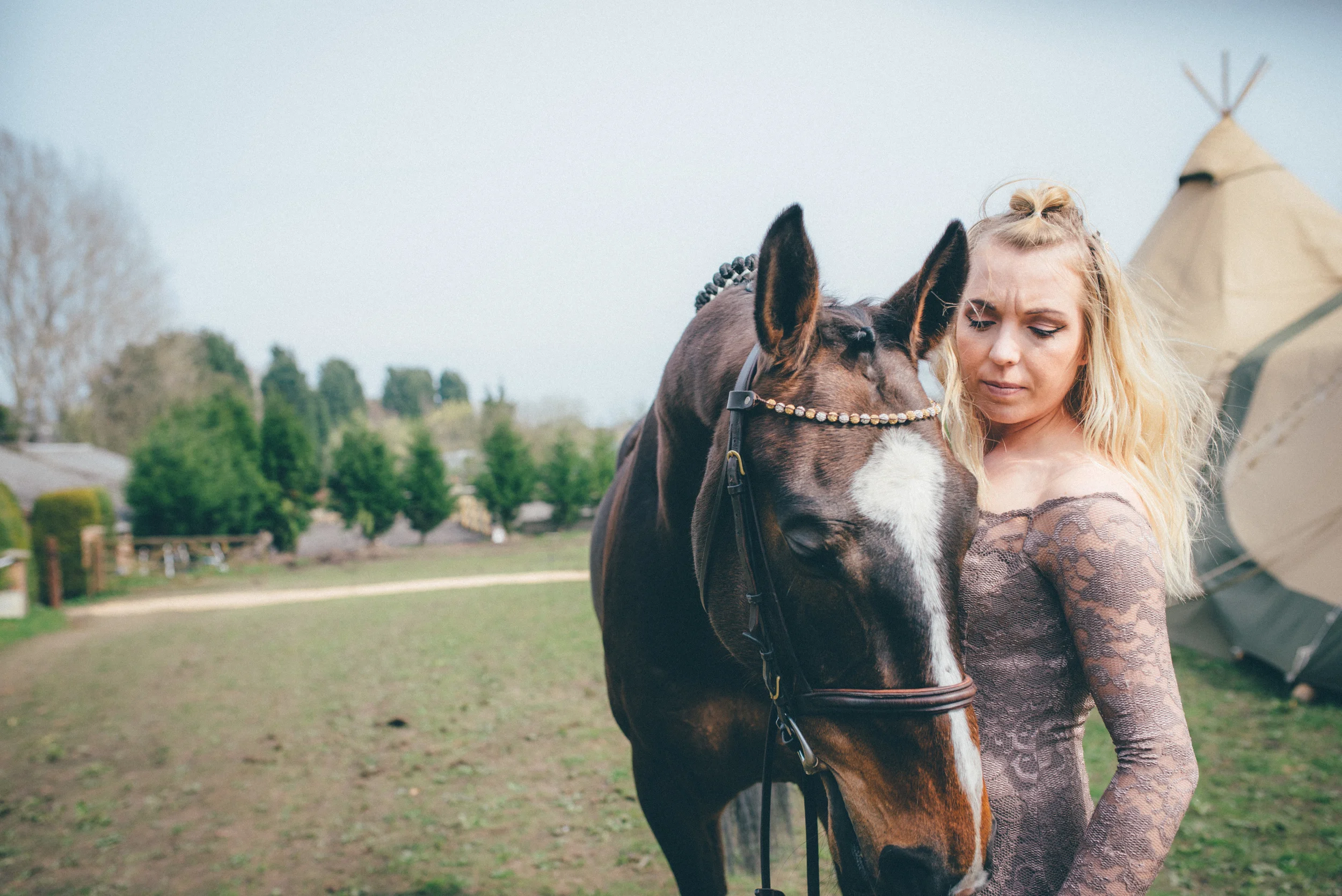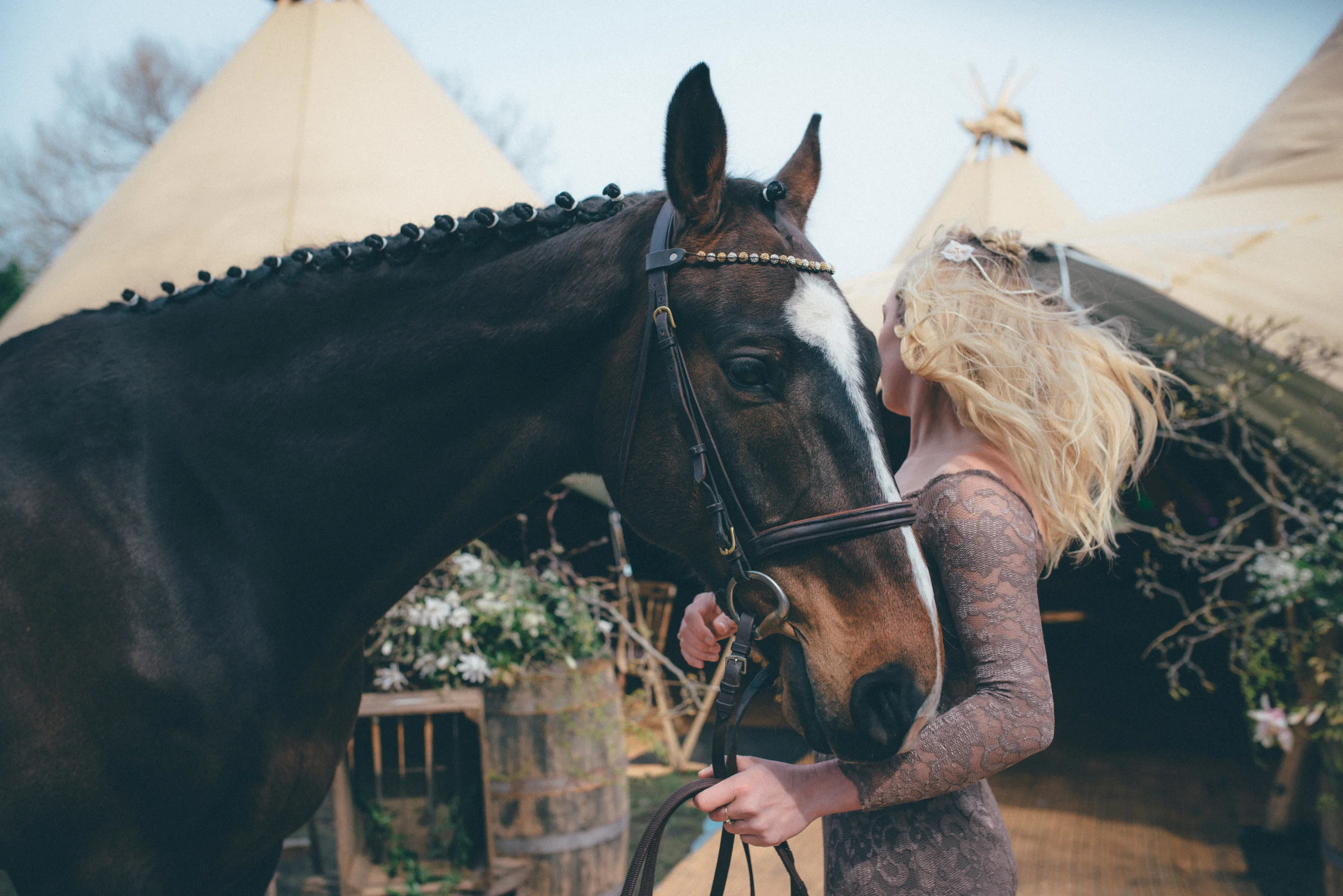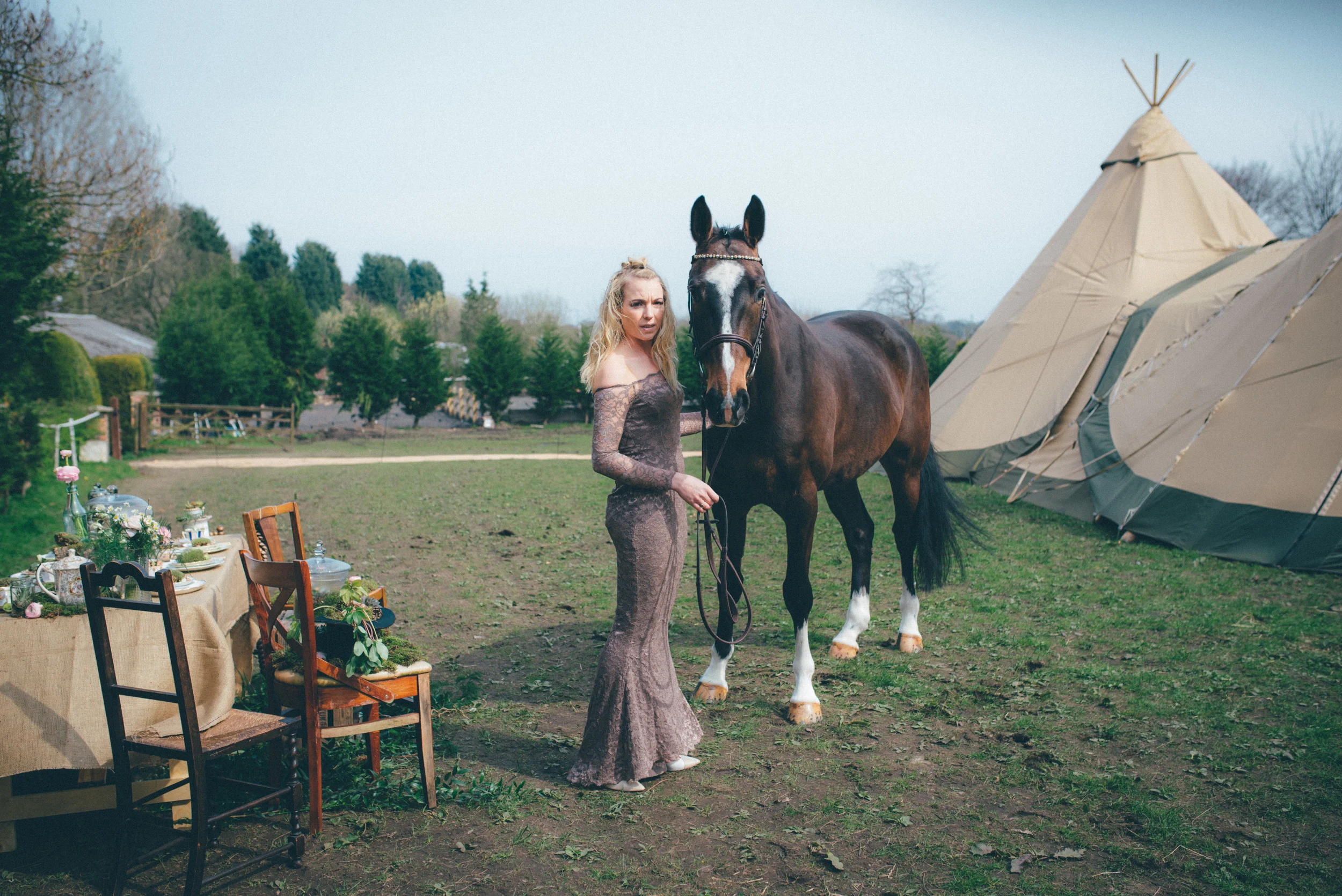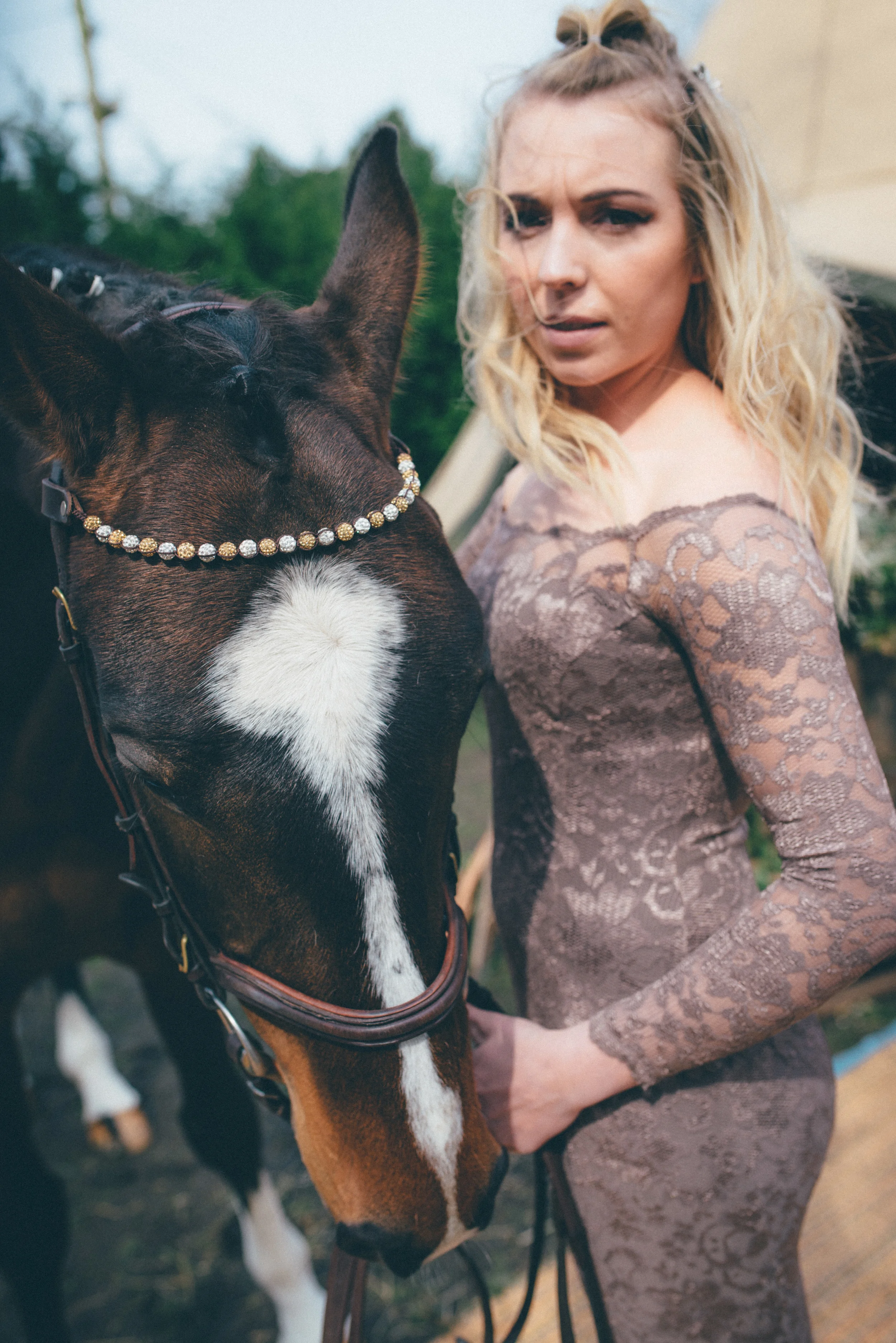 Over the last months, I've been lucky enough to meet some amazing wedding planners and stylists and back in March I received a phone call from the fabulous Ellie of Soft Touch Events. Ellie was holding an 'Indie Wedding Fair' at Ashton Hall Equestrian Center, the very same stables where my sister-in-law keeps our largest furry family member, the gorgeous giant that is Danny the Horse. Now unfortunately, the upcoming fair was already capped for photographers but Ellie put to me another option of involvement: come to Ashton Hall on the Monday after the fair with my gear and she would arrange other vendors to contribute their considerable talents into creating a DIY styled shoot in the tipis by Tipi Unique that had been erected for the event. With florals provided by Diddibox and Sassflower, gorgeous couture gowns by Erica Stacey Bridalwear, a cake from Pink Cocoa, stationary by Rodo Creative and makeup skills by Charlotte Dobson, and accessories by silver sixpence in her shoe, I was 100% sold! I wrangled two of my former coworkers and pals from Nicky Clarke Manchester, Roisin Dooley and Georgia Moran, to style the models' hair and we were in business!