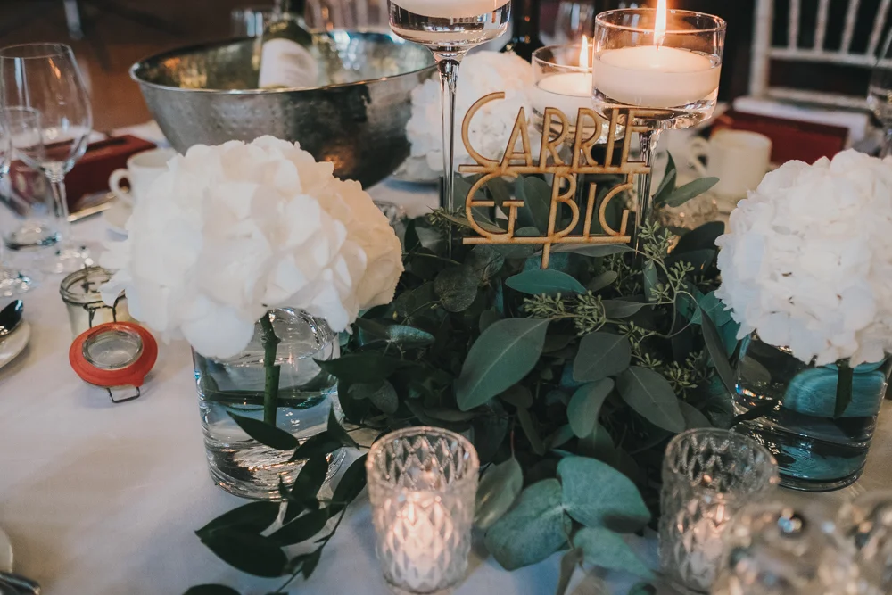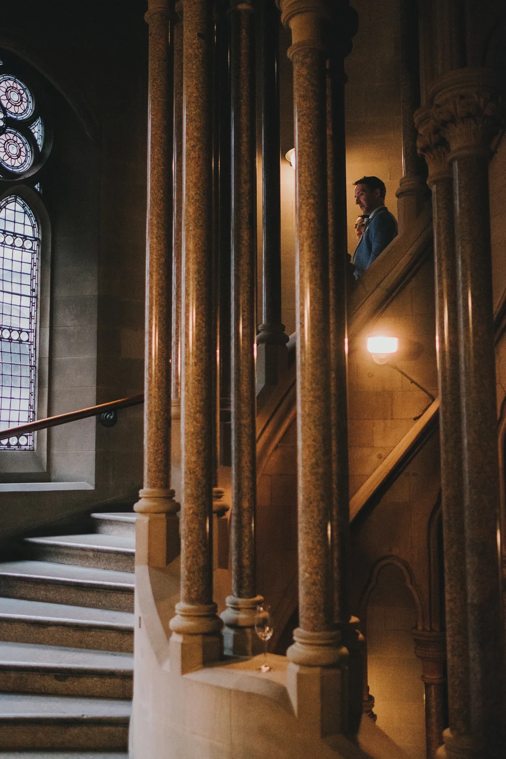 They had a drinks reception in the afternoon, and a fabulous singer in the evening. As the light dipped and the town hall closed to the public, it felt like we had the incredible space all to ourselves and more than a few of us had a bit of a wander around, exploring the town hall's hidden nooks and crannies. They decorated the venue with flowers and each table was named for an iconic couple of fiction - Carrie & Big, Vivian & Edward, etc, because they wanted to celebrate LOVE (and are big film/TV fans!).