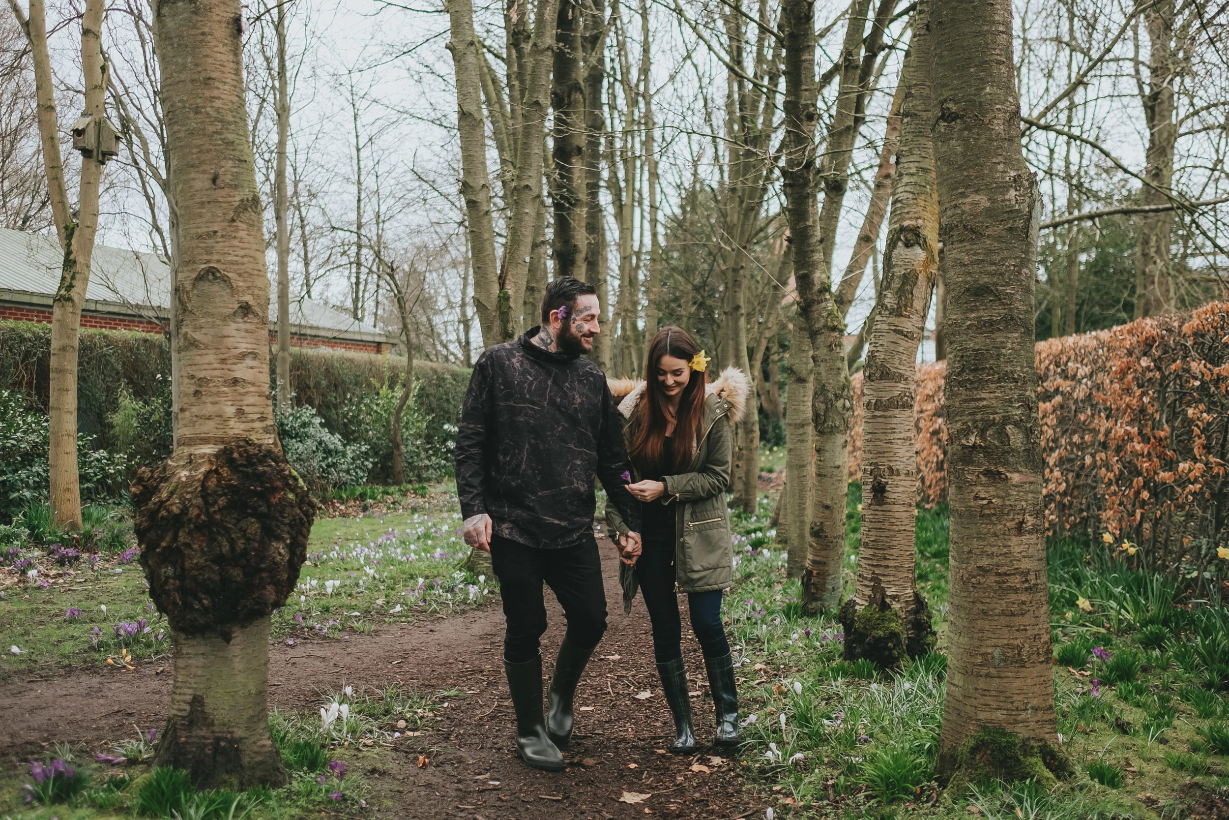 So what more fitting way to celebrate the start of spring and all that green than with a Walkden Gardens engagement shoot! Chantelle and Simon are getting married in just a couple of months at the stunning (and newly refurbed!) Haigh Hall in Wigan. The two are quite non-traditional with their gorgeous tattoos and unique style but theirs is yet another old-fashioned love story. Talking with them, you'd think they'd been married for a decade already, they are just that relaxed with each other and have a beautiful bond. When we were planning their engagement shoot ahead of their May wedding, they mentioned that they loved the idea of Simon's 4-year-old son CJ taking part and being in some of the pictures. What followed was the most lovely afternoon with the sweetest little family of three.