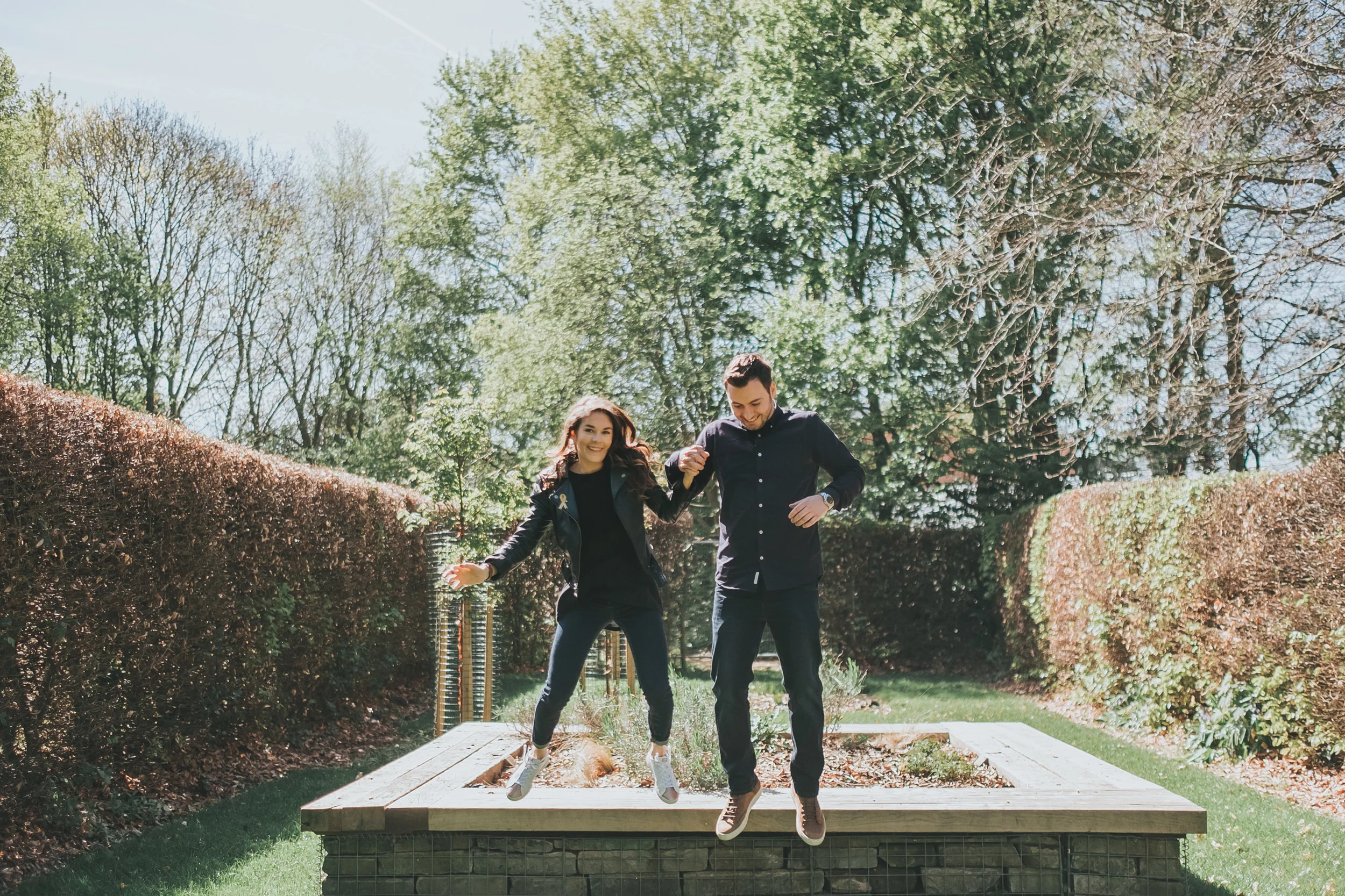 So in the spirit of love and light, I'm so excited to share the beautiful Philippa & Kallum's pre-wedding shoot in my favourite 'secret garden', Walkden Gardens. This gorgeous pair is getting married in an epic black-tie event at the STUNNING Saddleworth Hotel in just 2 weeks time and we spent a gorgeous afternoon in April getting to know each other, chatting about cake & their epic wedding plans. Pre-wedding shoots are always a bit awkward at the start, by their very nature they are the time for working out the kinks and figuring out how to communicate. These two were so so natural in front of the camera, they did my job for me (even when asked to run and jump)! And the way they interact and laugh at each other, how excited they both are for their future together and how so very much in love they are is inspiring.