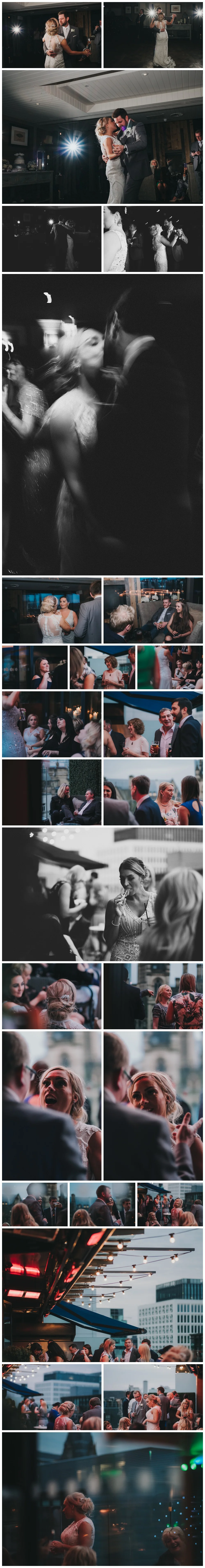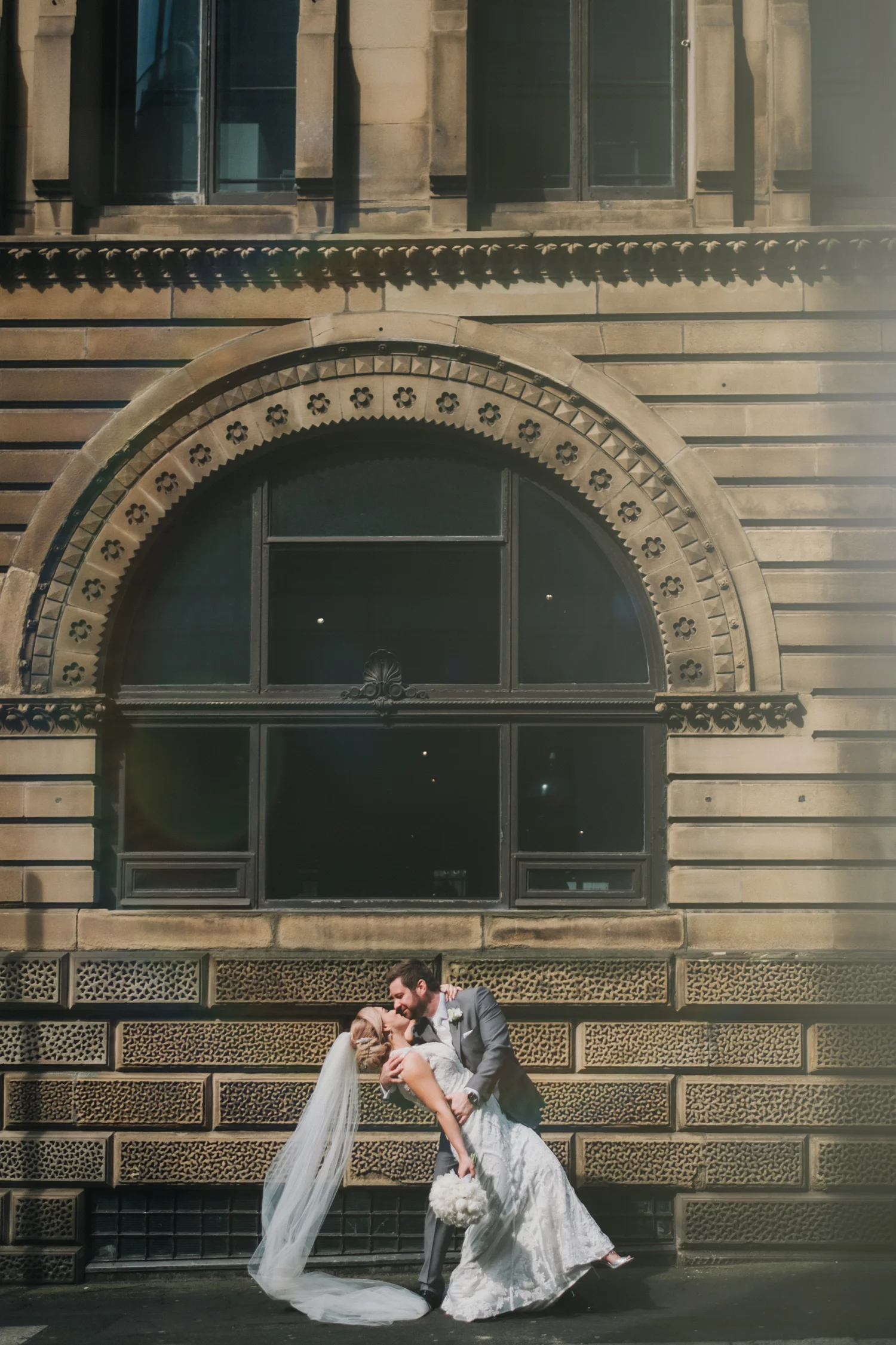 Liz and Rob are so in love with our beautiful city and really wanted to show it off on their wedding day, entrusting me to capture their vision as a love letter to Manchester. After their beautiful and super emotional wedding ceremony performed by the wonderful Louise of the Ceremony Company (seriously, not a dry eye in the house!), we ventured out onto King Street and had a bit of a play with the doorways and alleys and archways. These two are SO MUCH FUN and truly game for anything I threw at them, even cheesy old-Hollywood kisses. When we arrived back to the unreal King Street Townhouse, the dining room was set for their guests with elegant ivory peonies and silver touches relfected in the hundreds of candles. Florists Verdure seriously outdid themselves, it was absolutely stunning! The room opened up to a terrace with a spectacular view of Manchester Town Hall and our awesome skyline. Later in the evening, just at twilight we were given the chance to head up to the hotel's rooftop where we managed to sneak a few more shots and take in the waning remains of the day.