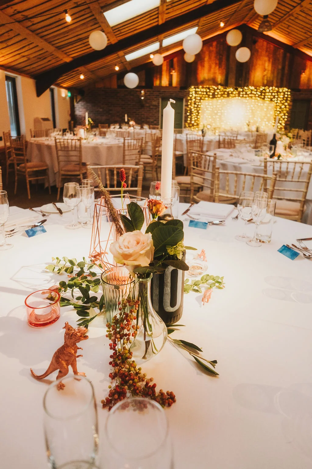The reception was in the main function room at the venue. They chose Owen House Wedding Barn because it’s so cosy and relaxed and they just fell in love with it. It was a very chilled, family & friends focused wedding, which made it feel like a giant party. I love shooting Owen House Wedding Barn weddings because the grounds are absolutely amazing. It's a venue where the staff and suppliers are all just at the top of their game. It's been designed as a bit of a photographer's paradise and I always find new and exciting nooks and crannies to capture each wedding I'm lucky enough to shoot there.