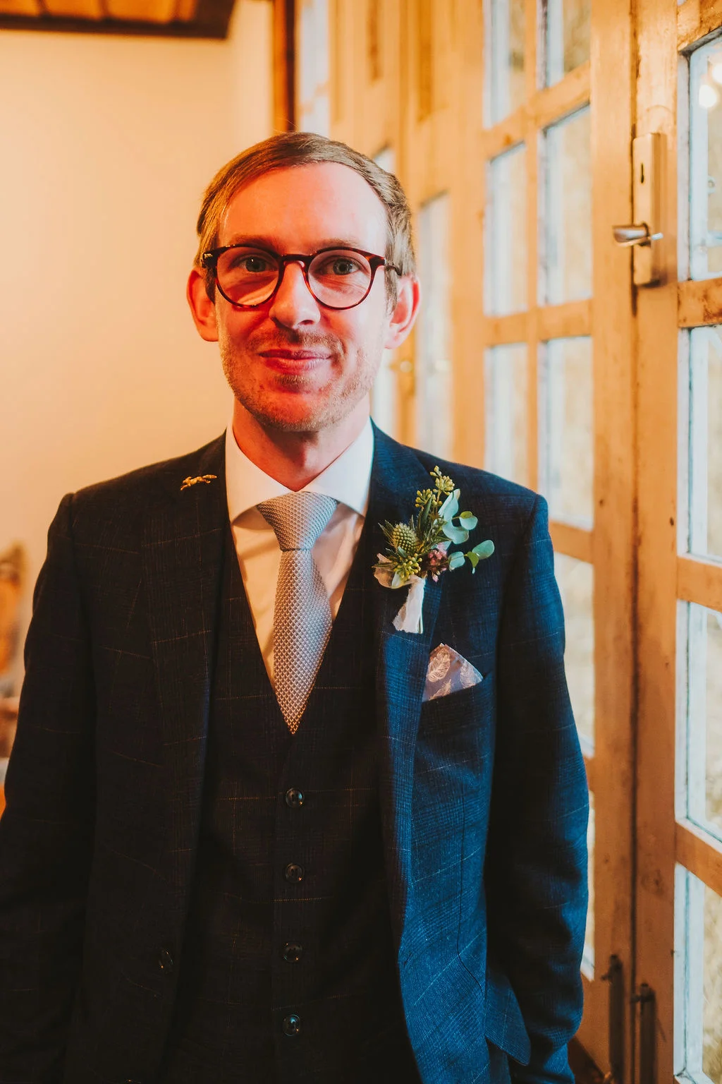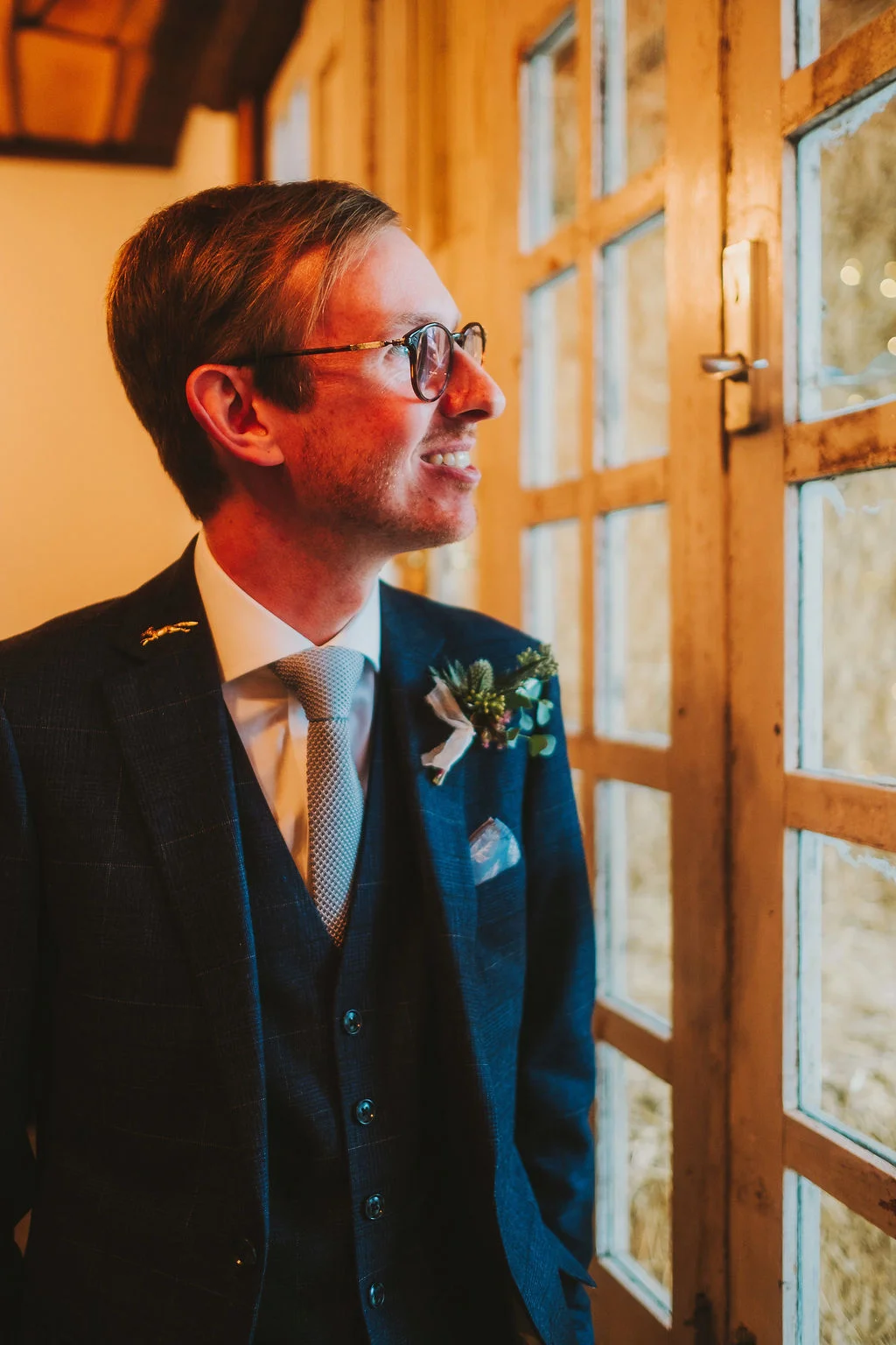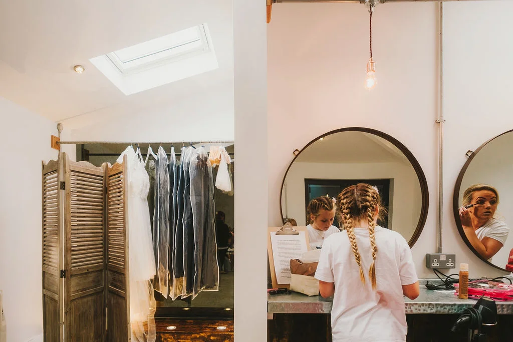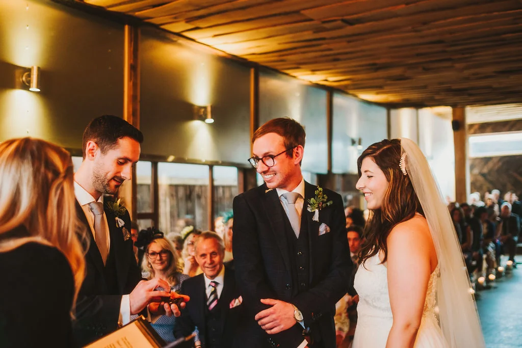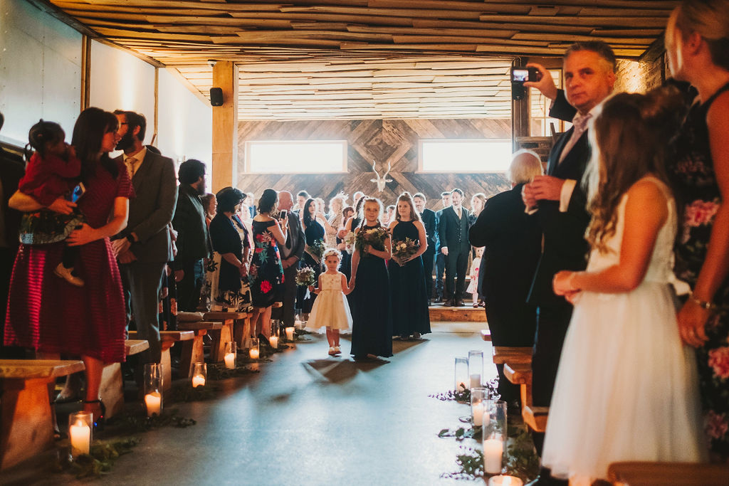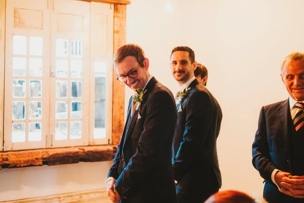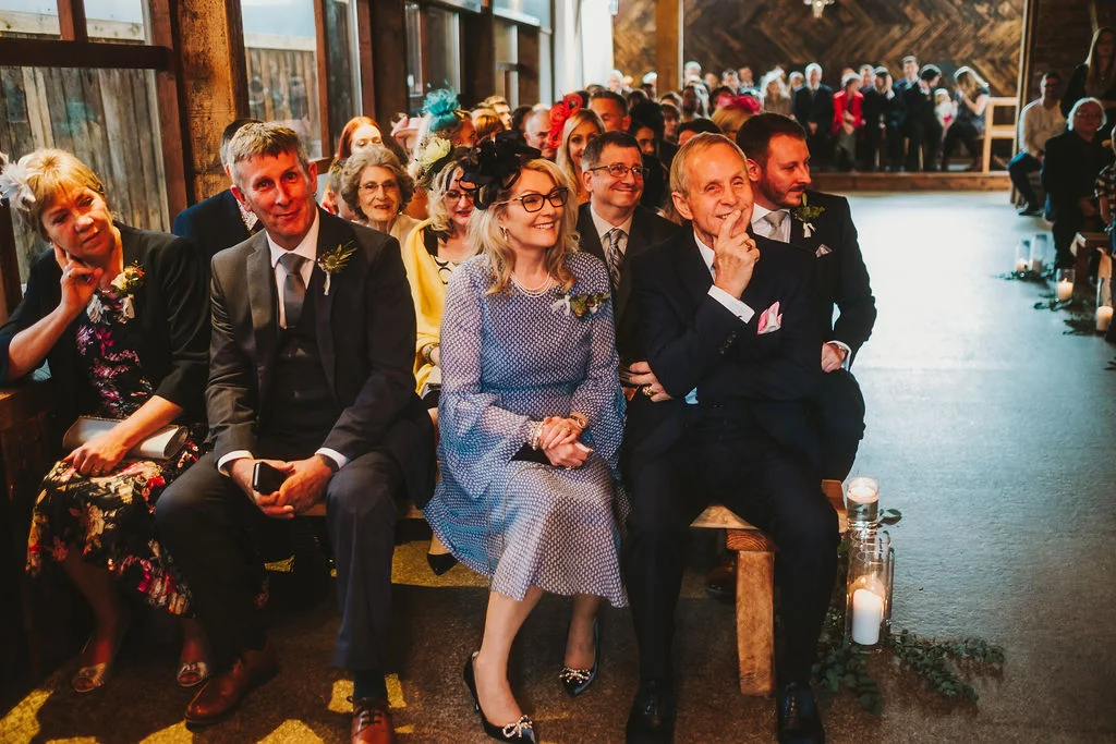Sarah got ready in the fabulous bridal prep suite, surrounded by her beautiful sisters & bridesmaids, and the atmosphere was full of excitement. We had tunes playing and prosecco was poured and it was just a lovely buzzy atmosphere. She then walked the short distance from the prep suite to get to the ceremony. One of my favourite things about shooting weddings at Owen House Wedding Barn is how close everything is together and how seamlessly the day flows. Shaun got ready on site in one of the gorgeous chalets just next to the main ceremony room.
