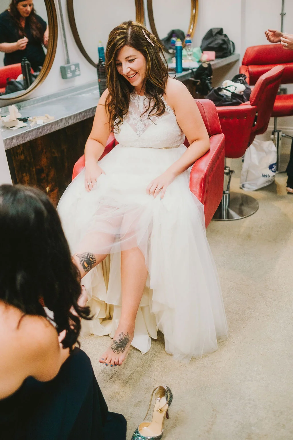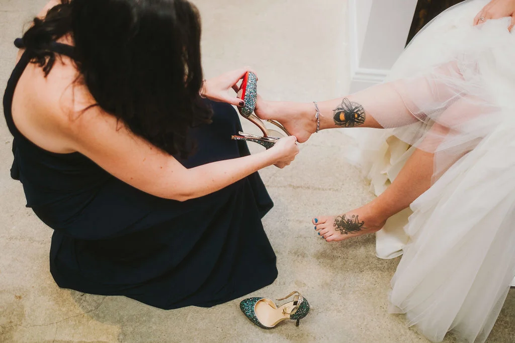 Sarah wore a stunning halter-neck style gown by Watters and Shaun wore a three piece suit and they looked so perfect. Sarah’s shoes were super-sparkly red-soled iconic Louboutins - she then changed into bright white Nikes! and Shaun’s suit was super dapper and they just fit perfectly together with the surroundings. I had such a lovely time hanging out with this creative, sweet and fun pair - you really get the sense that they're the very best of friends. Everyone at the wedding was soo excited and happy for them!