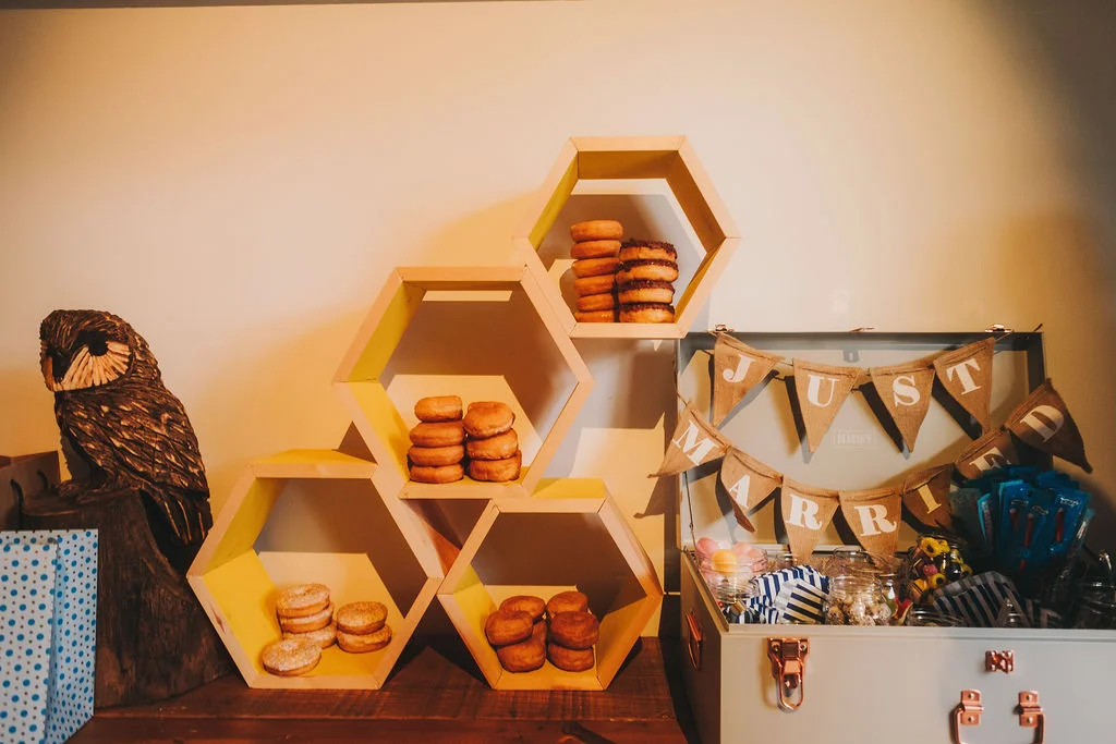 They had a cocktail drinks reception in the afternoon, and an intimate family dinner in the evening. With so many gorgeous DIY touches and loads of greenery supplied by the amazing Sasha of Sassflower, this late-summer afternoon felt magical. We even were graced with the presence of a pair of lovebirds when we snuck out again for photos later! They decorated the venue with lots of colour and tealights, because it fitted so well to the barn wedding. From the unique hanging table plan to the paper lanterns, the doughnut table and fruit-dressed naked cake by Vanilla In All Seasons, everything was just so gorgeously designed, paying homage to the venue's rustic roots.