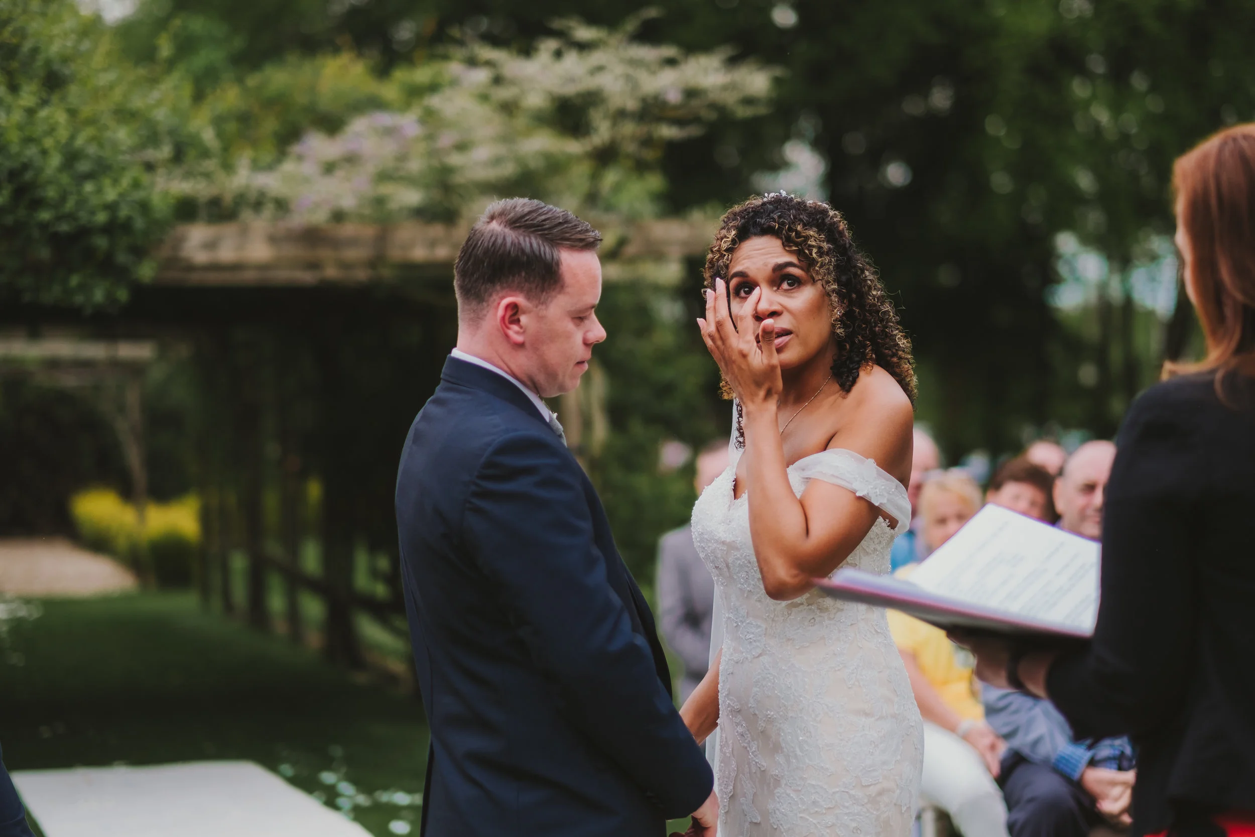The ceremony was a beautiful service on the grounds of the venue. With the impressive gardens on Nunsmere Hall as a backdrop, accented by Diddibox's elegant blooms, it was an amazing dream of a spring wedding. During the ceremony Mark and Vicky headed back inside the venue to legalise their vows and it was such a lovely intimate moment shared just by their witnesses. It was so emotional and a real tear-jerker.