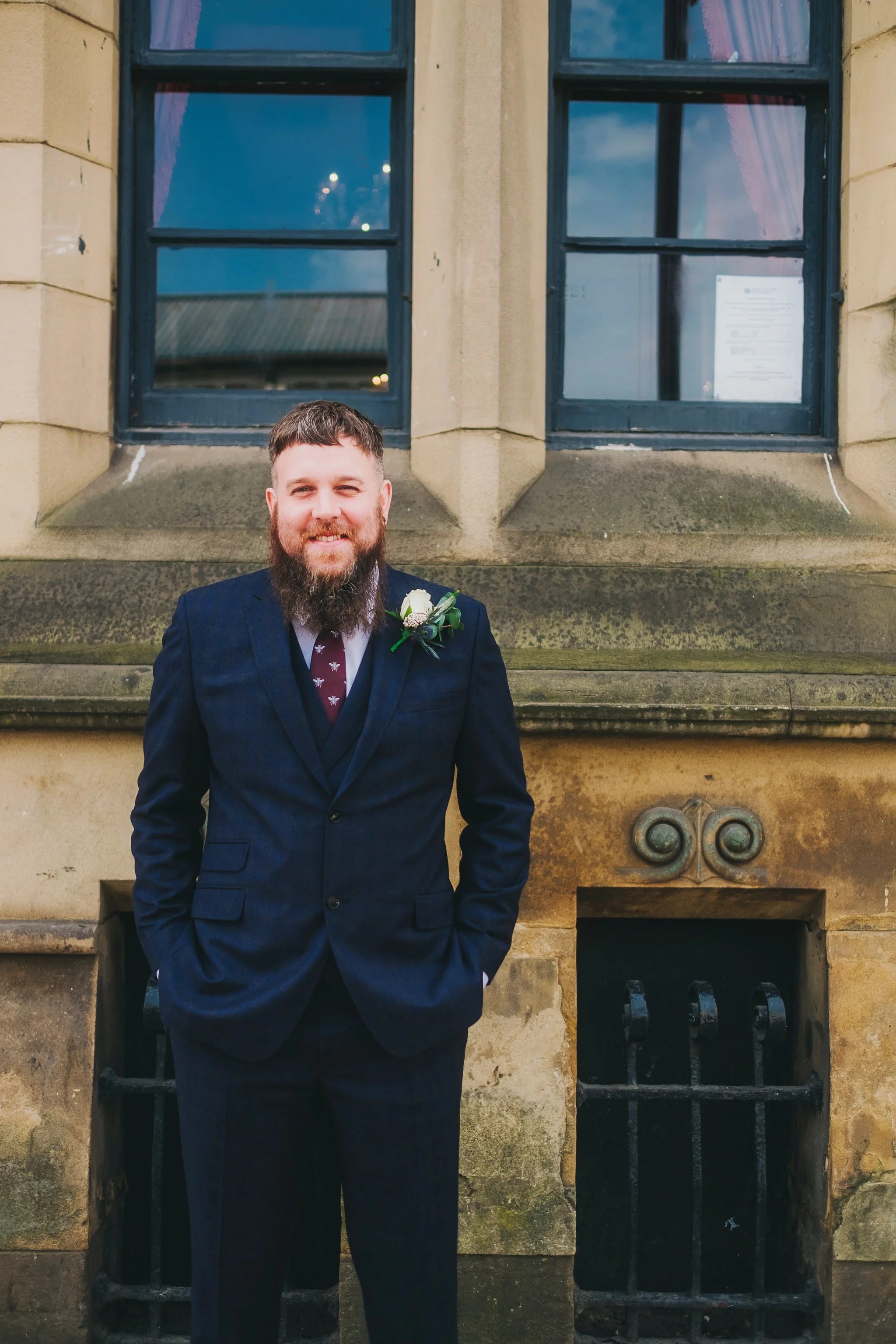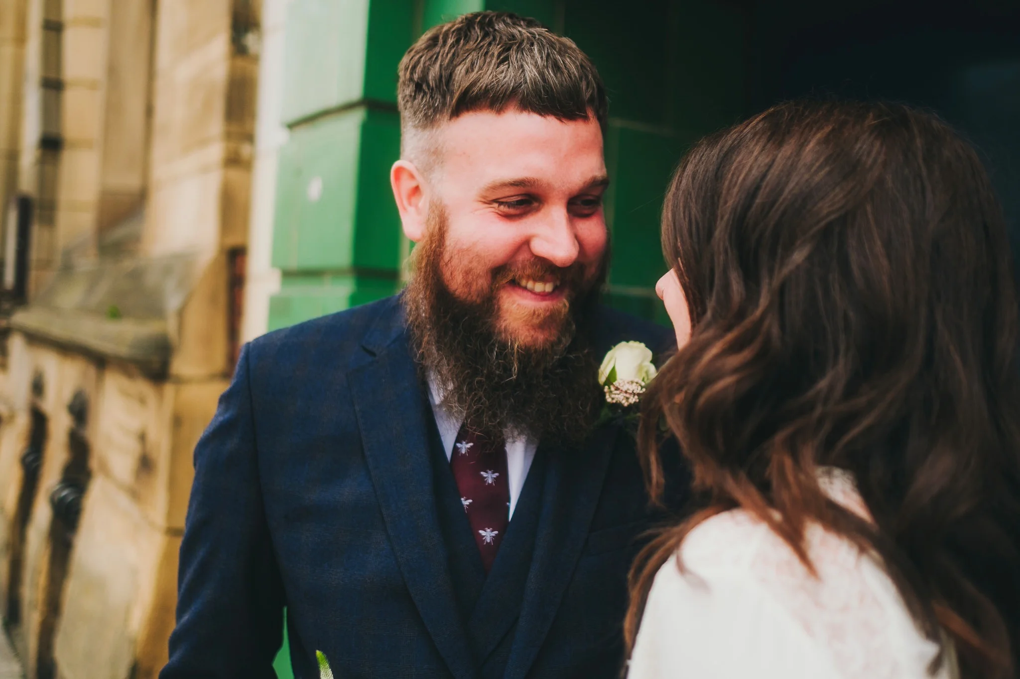 Matt got ready at home with his dad and best man Tom. He wore a three-piece navy Ted Baker suit topped with a perfectly befitting bee-print tie, and looked really dapper. Amy & Matt opted for a pre-wedding 'first look' just outside the Deaf Institute. I can’t even explain just how moving the moment was when Matt turned and saw his STUNNING bride walking towards him. There were plenty of tears all around and afterwards we took some lovely family photos.