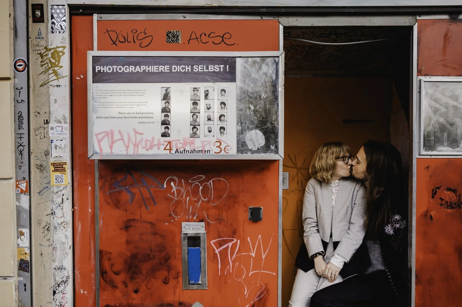 So of course I got on a plane to Berlin. And on a brisk grey November afternoon at Pankow Rathaus, 15 years to the day they met, Zoe & Adrian got married wearing stunningly crafted suits with just myself and the government official performing the ceremony present. They gripped onto each other, we all hugged and cried and spent the next hour exploring their favourite spots and taking some pictures (complete with a detour to a photo booth). That evening I returned to their flat where Adrian’s mum & sister and their partners were waiting with confetti and cake and well-wishes. We feasted at their favourite local spot, we toasted to them and I returned to my hotel with a full belly and a fuller heart.